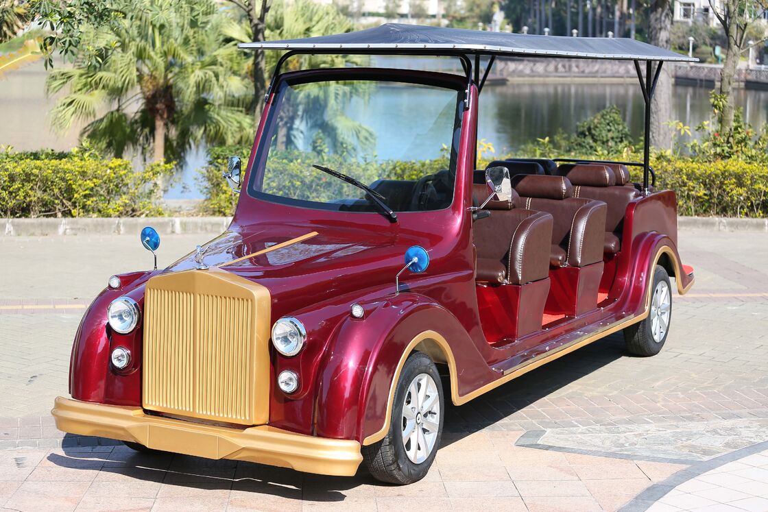 Ce Onaylı 8 Koltuklu Kırmızı Vintage Elektrikli Klasik Otomobiller 72V Trojan Pilli Elektrikli Klasik Otobüs